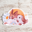 Милий набір глянцевих вінілових наліпок із пацюком серед соняхів та двома кроликами з ромашками 🌻🐇🐀